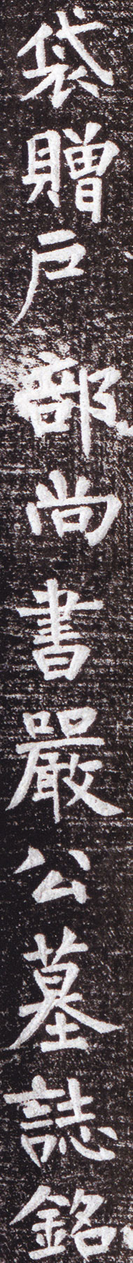 严公贶墓志,位于西安市长安区凤林北路与文苑南路交接处东部,发现这方墓志的墓葬平面呈“刀把”形,南北向,墓室被盗,葬具及人骨不存,出土塔式罐盖、陶半身俑、陶狗及墓志。墓志长76.7厘米、宽77.1厘米、厚14.5厘米,墓志正面刻字42行,满行45字。